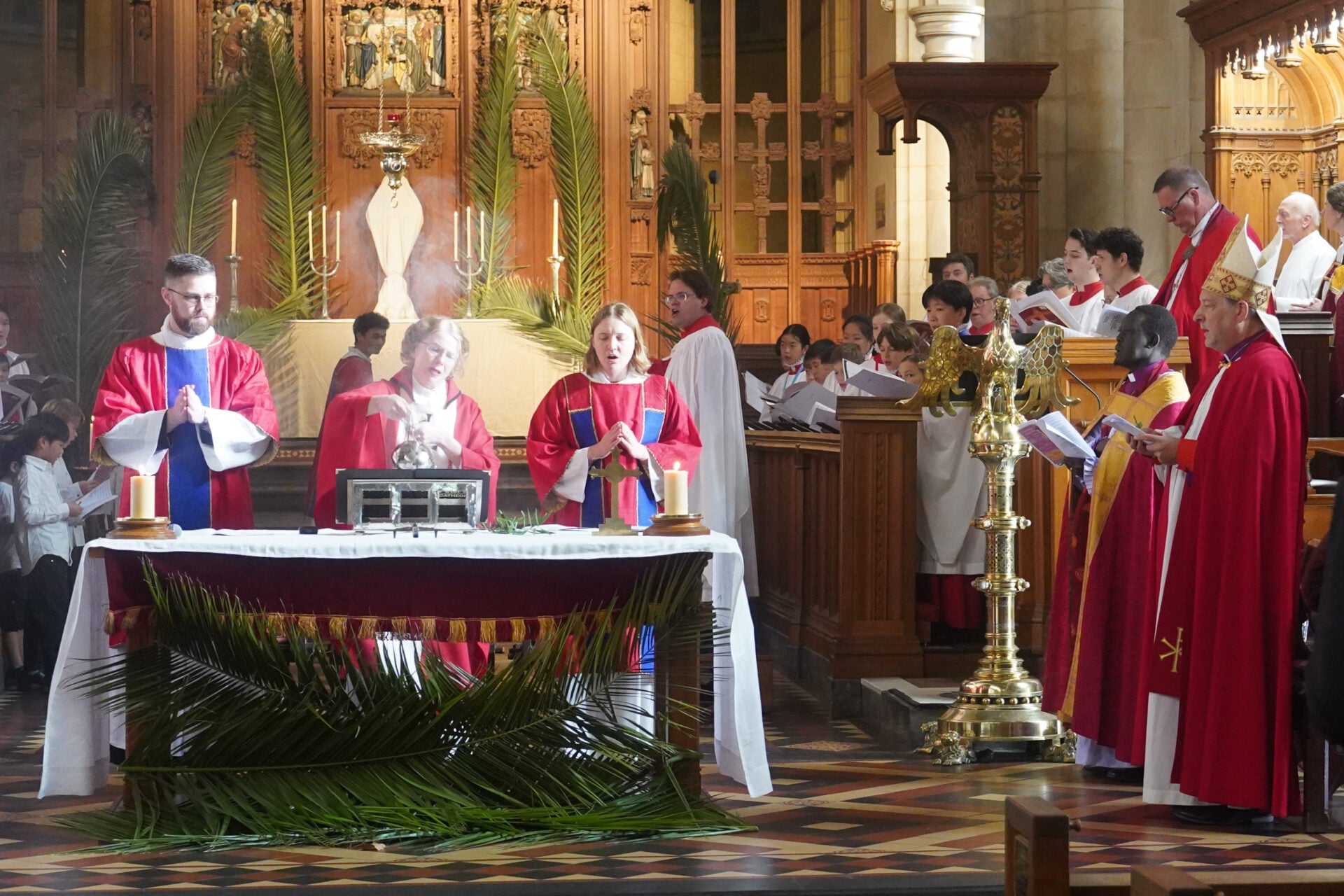 The most important week in the Church began on Sunday morning in the memorial garden beside St Peter’s Cathedral, Adelaide, where parishioners gathered on a perfect early autumn morning, palm fronds in hand.